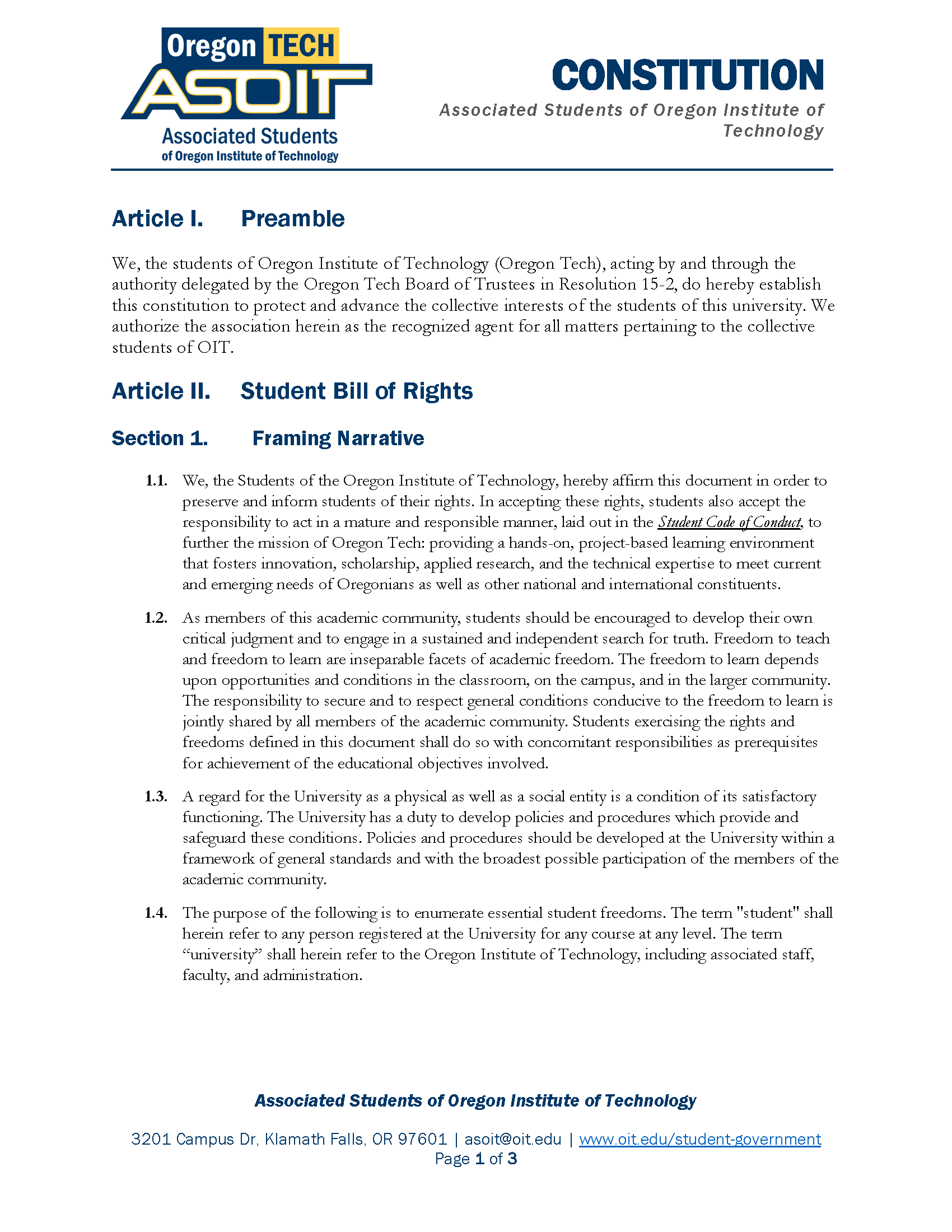 - Utilize Oregon Tech governance structure to effectively advocate for student concerns and feedback.