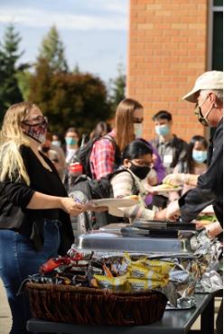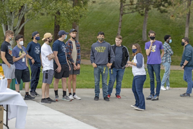 Fall term also allows us this year to offer meals in person, along with small gatherings of students for activities. It is so wonderful to walk through the College Union (where the dining center is located) and see students sitting at tables together (leaving some distance between each other) enjoying great company with their meals! So far this year, students are engaged in a lot of gaming activities, from Dungeons and Dragons, to Smash Bros and every board and/or card game imaginable. Small gatherings for movie nights, pumpkin painting and more have occurred so far this term, with more coming up as the weather turns colder.