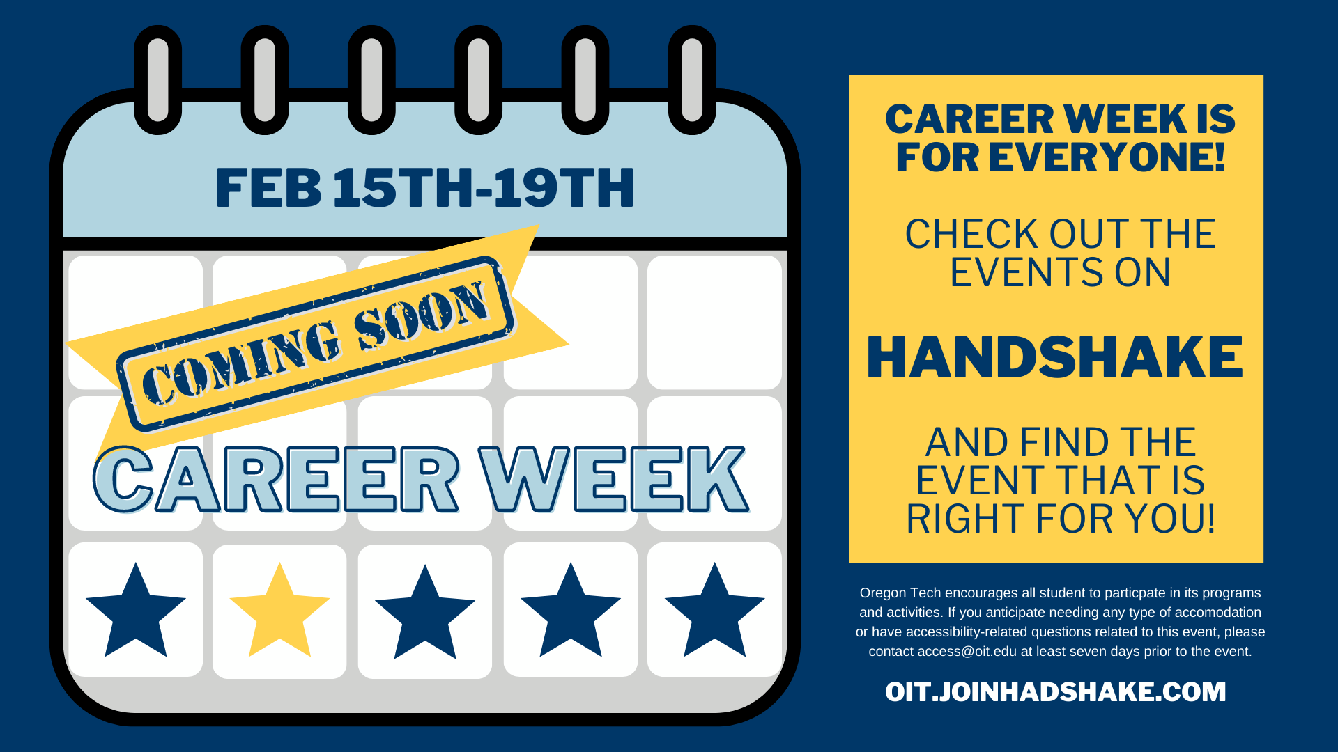 Topics Include: Video Etiquette, Klamath Falls Small Business & Nonprofit Info Session Series, Diversity Question Workshop, Career Exploration Workshop, MECOP Info Sessions, Environmental Science Professional/Alumni Panel, Peace Corps, All About Internships, Student Leadership Resume, Non-Tech Roles in a Tech World, Careers in Law Enforcement, Resume Writing Tips, Military Meet and Greet, BIPOC at Work, Tech in Health Care, Become a Teacher