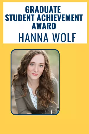 The Graduate Student Achievement Award was established in 2018 by the Student Awards Commission in recognition of a student’s outstanding accomplishments such as graduate projects, papers or presentations, research experiences that are judged overall to have made a significant contribution to the student’s academic area of interest.