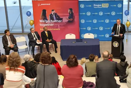 "Oregon Tech, as an industry's university, prides itself on being a surrogate lab for industry's innovation. This partnership with Boeing is a great example," said President Nagi Naganathan. "We sincerely thank The Boeing Company for creating this tremendous immersive industry experience for our students right on campus as they pursue their degree programs. I am confident this amazing experience will draw more students and industries to Oregon Tech and Klamath Falls and give our students a distinctive edge at graduation."