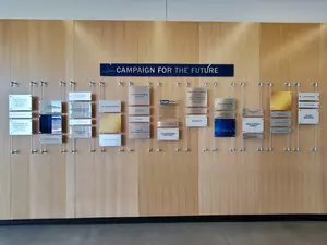 Major contributors to the Campaign for the Future are recognized on the donor wall.