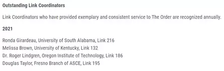 Dr. Roger Lindgren, professor and chair of Civil Engineering at Oregon Institute of Technology, has been named a recipient of the Outstanding Link Coordinator Award by the Order of the Engineer organization. Dr. Lindgren has organized Order of the Engineer ceremonies at Oregon Tech since 2001 and has taught at the university for 22 years.