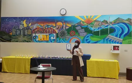 Although they are a science student and a health student, the two artists met in an Oregon Tech art class led by Marzena Terry, who brought the mural idea to them.