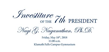 Oregon Tech’s Board of Trustees invite the community to attend the investiture of Nagi G. Naganathan, Ph.D., ASME Fellow as the 7th President of Oregon Institute of Technology on Friday, May 18, 2018 at 11 a.m.