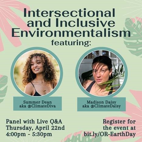 • Sustainability in Oregon & Beyond, Earth Day, April 22, 11 am - noon,